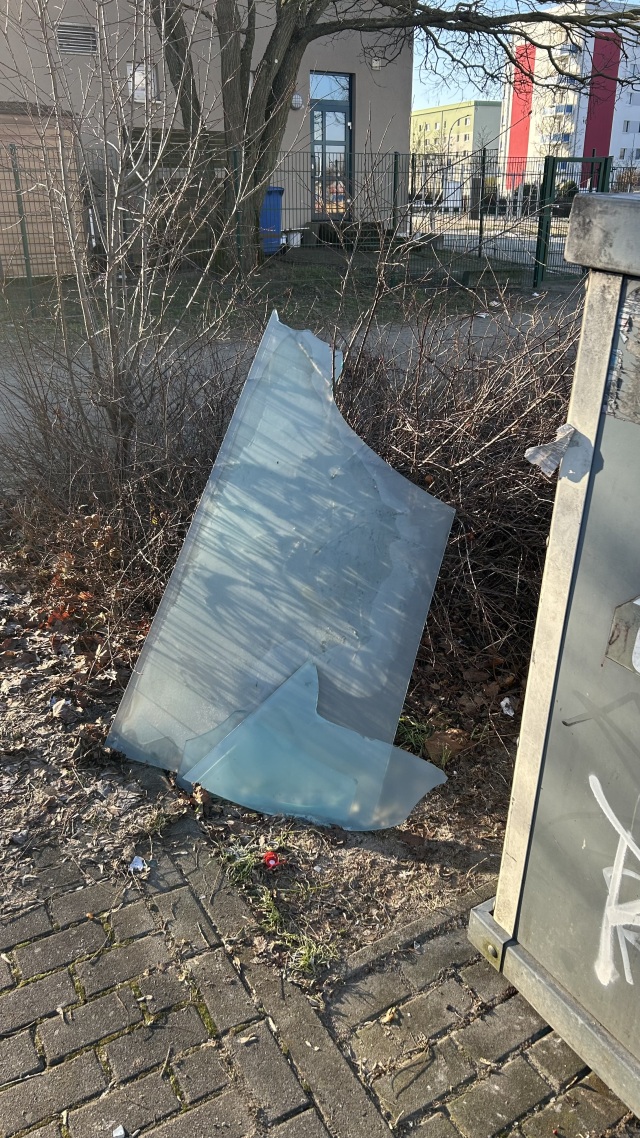 Glasscheibe neben dem Glascontainer am JTT abgestellt