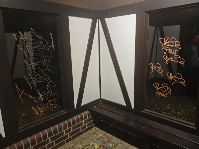 Status - in Arbeit (gelb) Beschreibung Scheiben Bushaltestelle Krausnick Ortsmitte beschmiert Kategorie: Vandalismus ID: 370260Status: in Arbeit (gelb). Die Scheiben in der Bushaltestelle "Ortsmitte" wurden beschniert Ort/Datum/Foto Krausnick Hauptstraße 13.10.2025, 20:11 Uhr Anmerkung 14.10.2025 Vielen Dank für Ihren Hinweis. Der Sachverhakt wird an das Ordnungsamt, den RVS und später für eine Anzeige an die Polizei weitergeleitet. Ihre Maerker-Redaktion